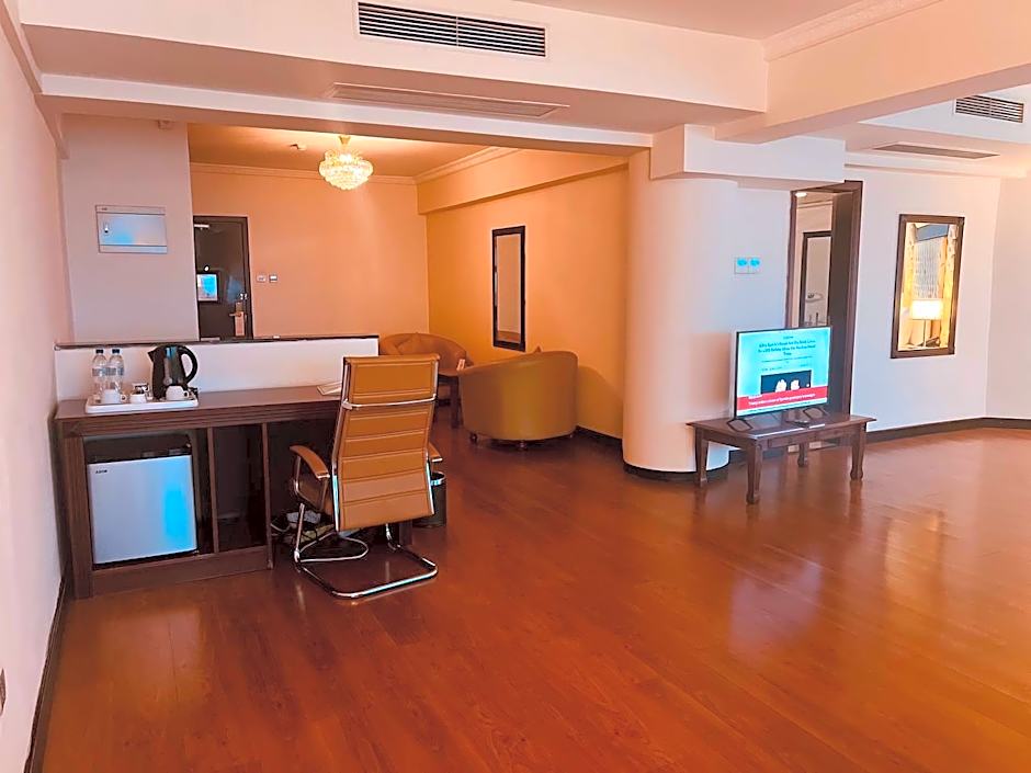 Featuring a private entrance, this air-conditioned suite consists of 1 living room, 1 separate bedroom and 1 bathroom with a bath and a shower. The spacious suite provides soundproof walls, a tea and coffee maker, executive lounge access, a flat-screen TV with satellite channels, as well as city views. The unit offers 2 beds.